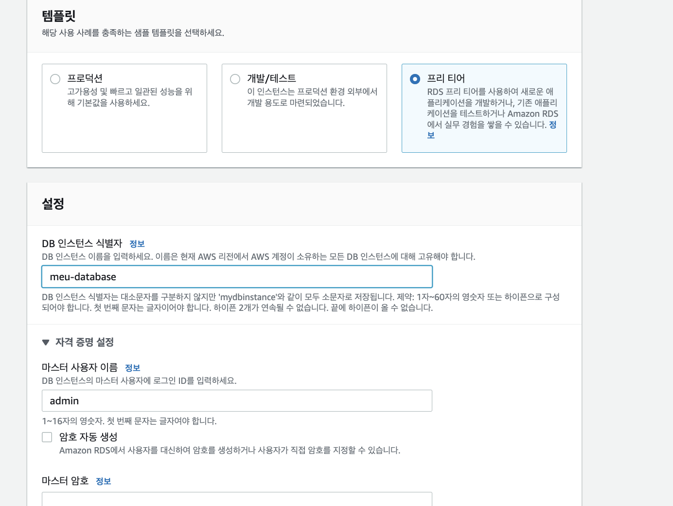 그 후 나머지 설정은 프리티어를 사용하시면 프리티어 설정하시고 자격 증명 설정을 해주시면 됩니다 !!