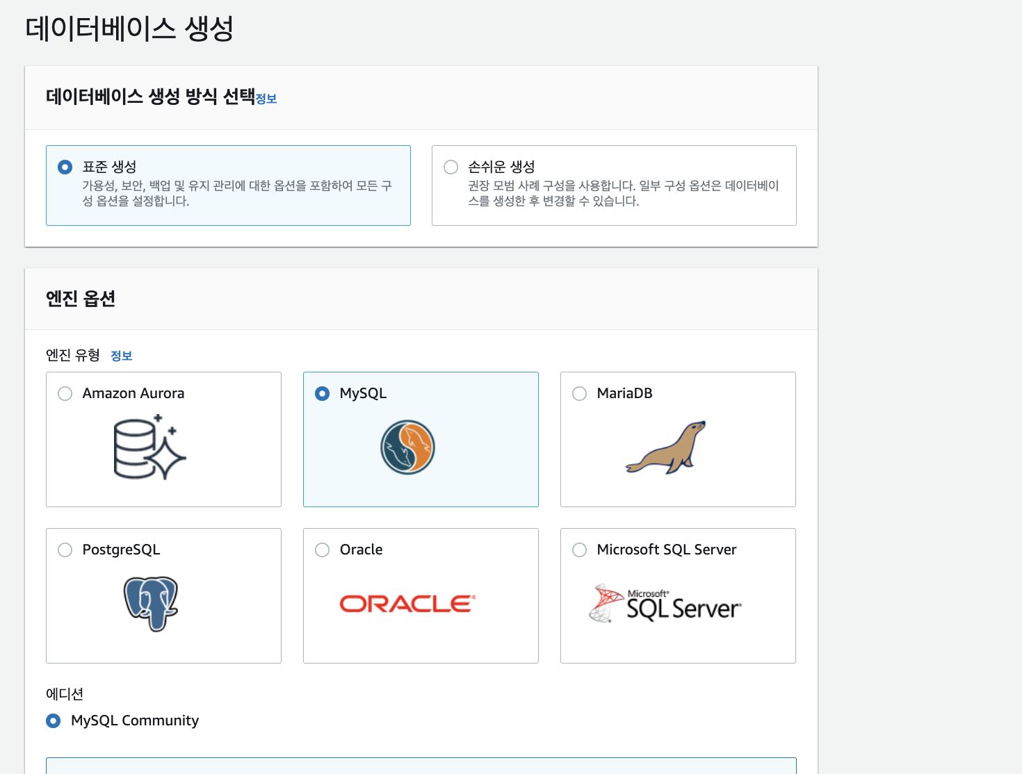 먼저 AWS RDS에서 mySQL 데이터베이스를 생성합니다.