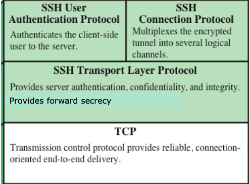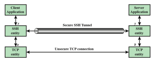 : 보안 인증 연결을 설정하고 SSH 전송 계층 프로토콜 위에 여러 논리 채널(터널링)을 다중화 함