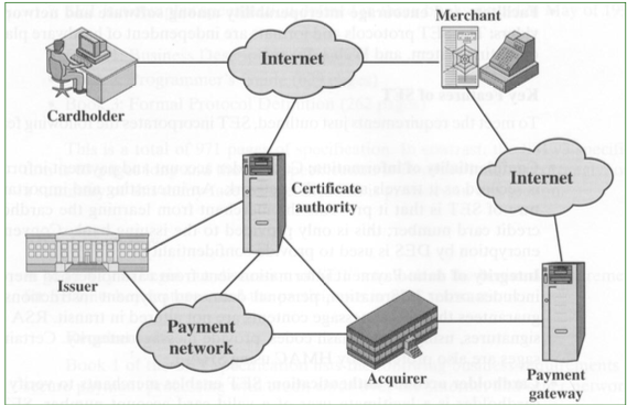 - certificate authority : 카드 소유자, 가맹점 및 결제 게이트 웨이에 인증서를 발급하는 신뢰기관