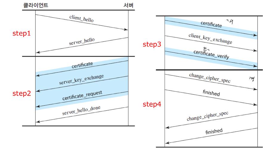 - 논리적 연결을 시작하고 보안 기능을 확립한다. ( cilent_hello -> server_hello )
