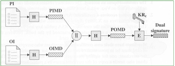 이 때 개인정보를 위해 PI는 가맹점에 숨겨야 하고, OI는 은행에게 숨겨야 하지만 둘은 연결되어 통신에 사용한다.