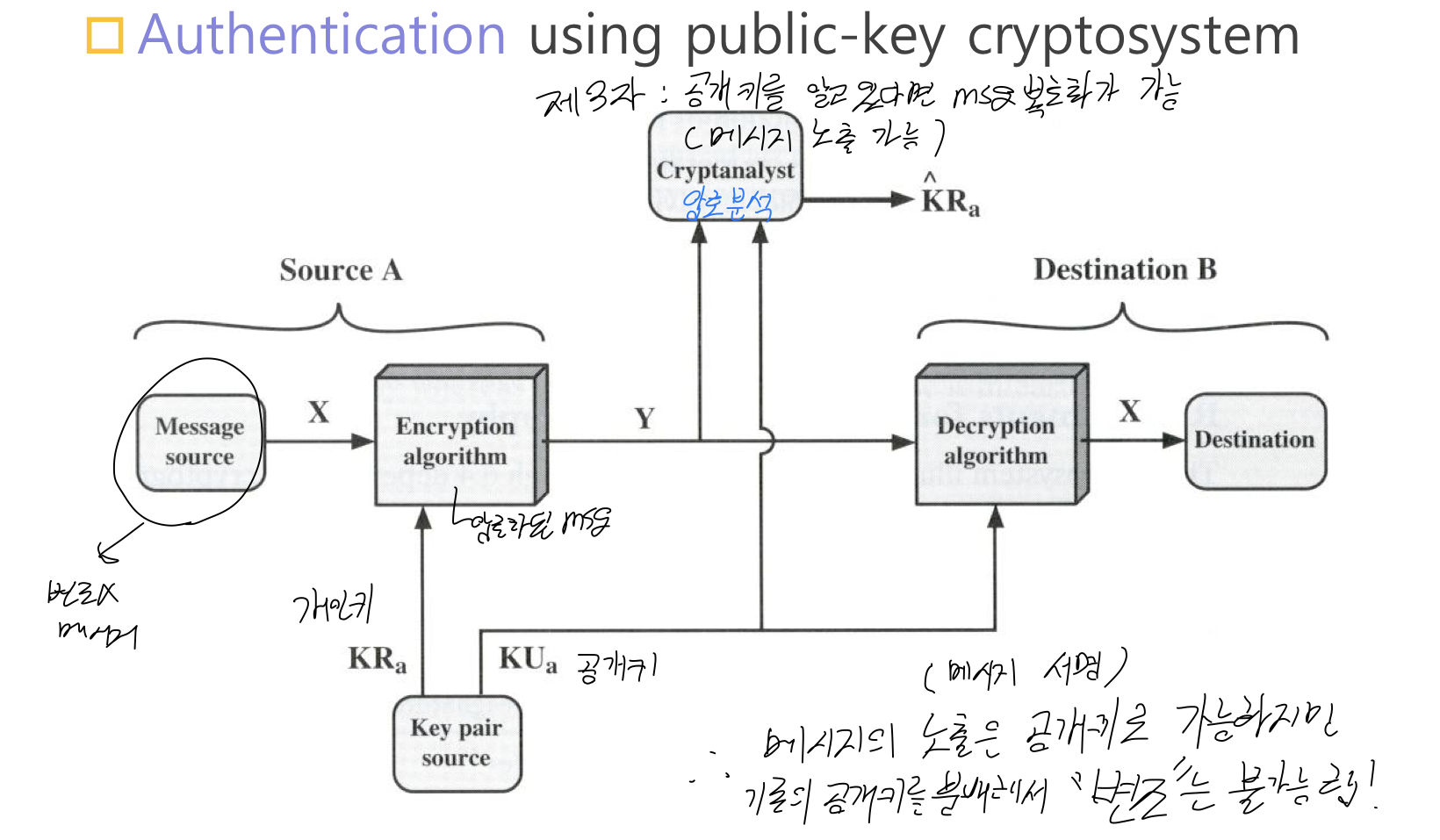 => 3자가 서로 간의 공캐키를 알고 있다면 전송 중간에 가로채서 Msg를 복호화 하는 것이 가능 ( 메시지 내용 노출 가능 )