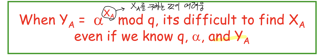 - 이산 로그의 계산이 어려운 것을 이용한 알고리즘