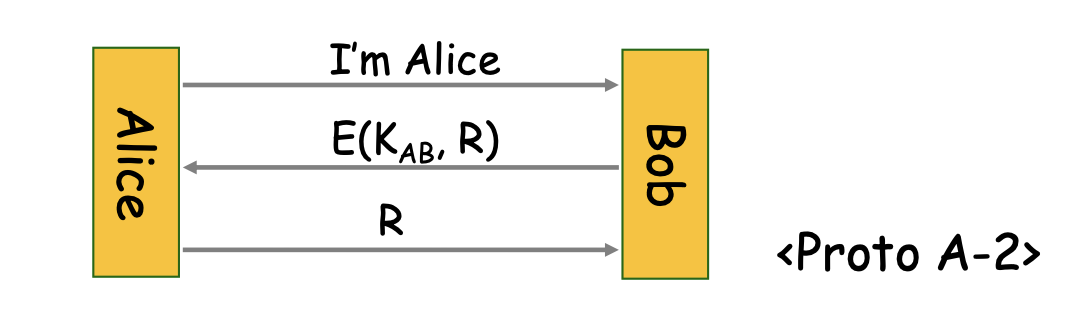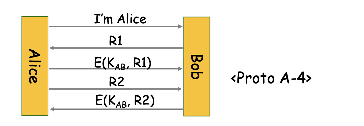 송신자가 난수를 보내고, 서버는 새로운 난수와 암호화 된 원래 난수를 보냄 그 후 송신자는 세션키로 암호화 된 서버가 보낸 난수를 보냄 |