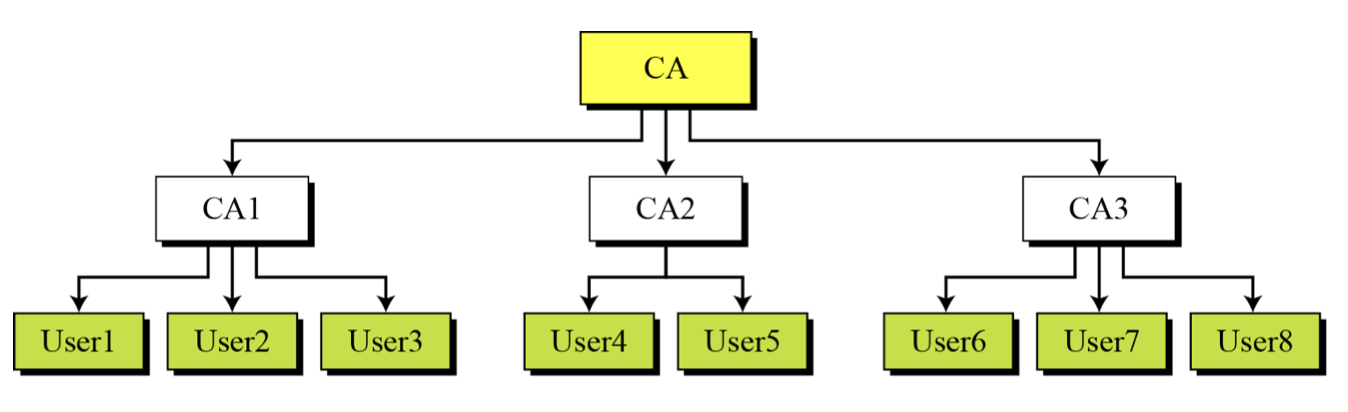 PKI의 신뢰모델은 아래와 같이 계층적 모델로 구성할 수 있다.