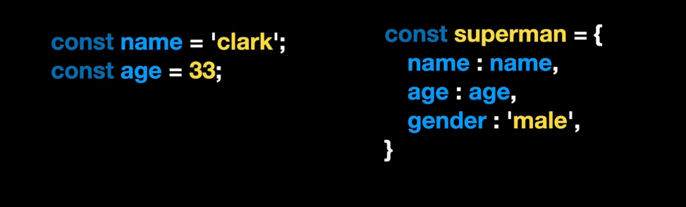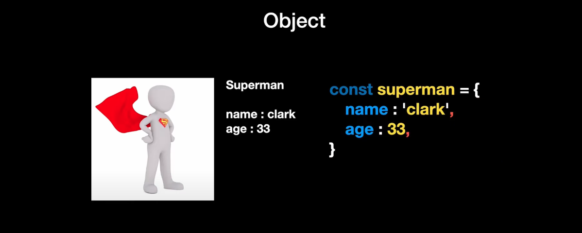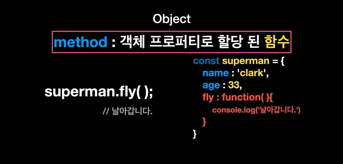 | 추가 | superman.gender = 'male'; superman['haircolor'] = 'black'; |