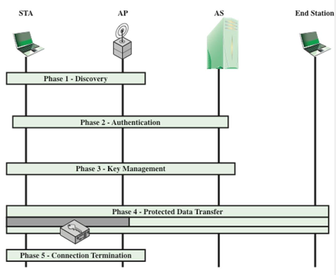 - STA와 AP가 서로를 인식하고 일련의 보안 기능을 합의함