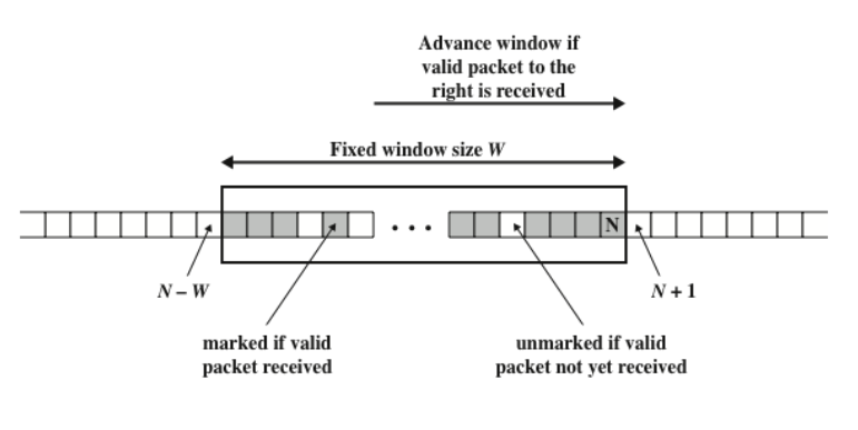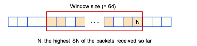 - 수신된 패킷의 SN이 Window 내에 있는 경우: MAC을 확인하고, 올바른 경우 Window slot을 표시한다.