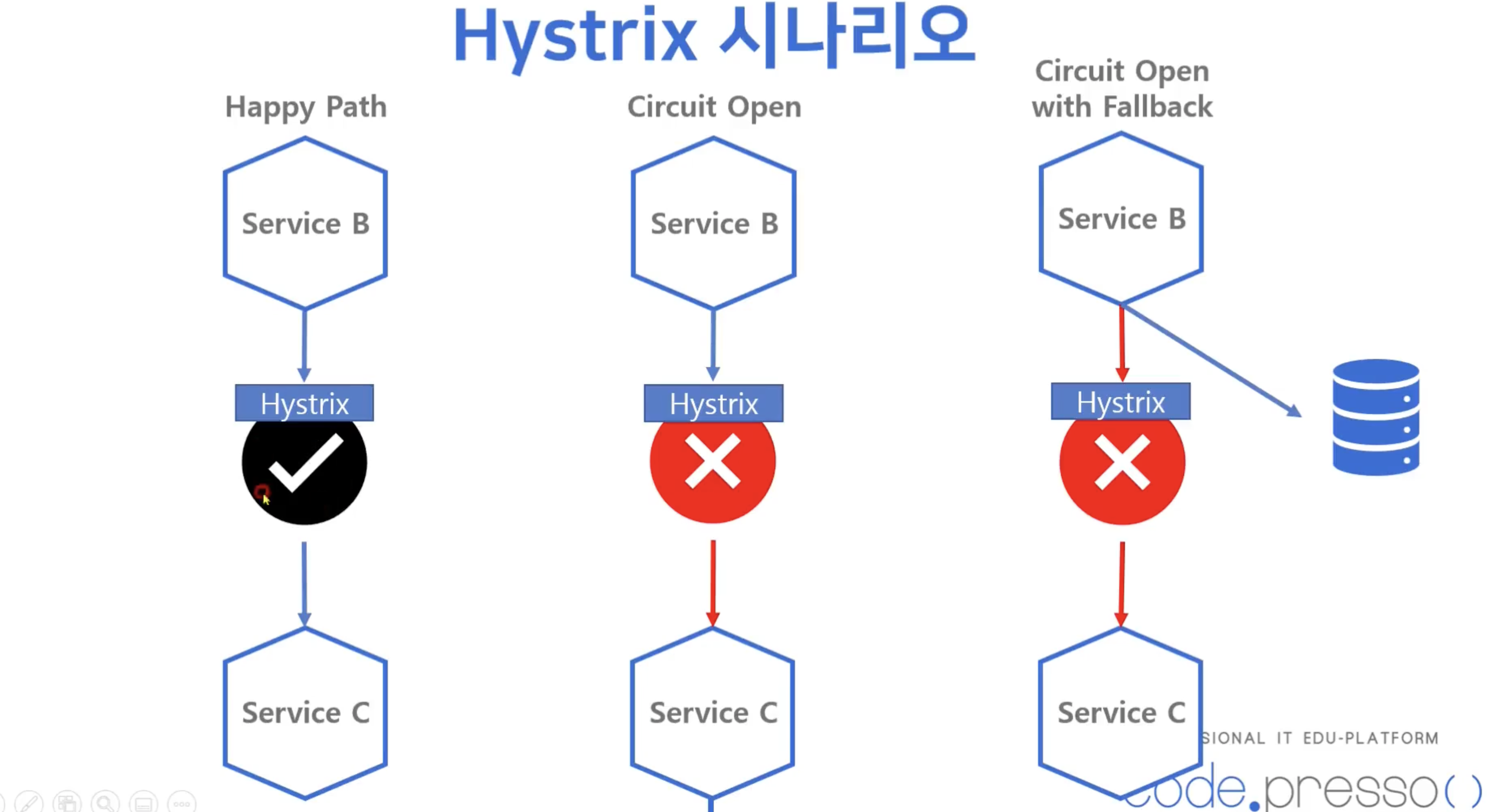1. Hystrix 는 서비스 C로의 실패 회수를 추적