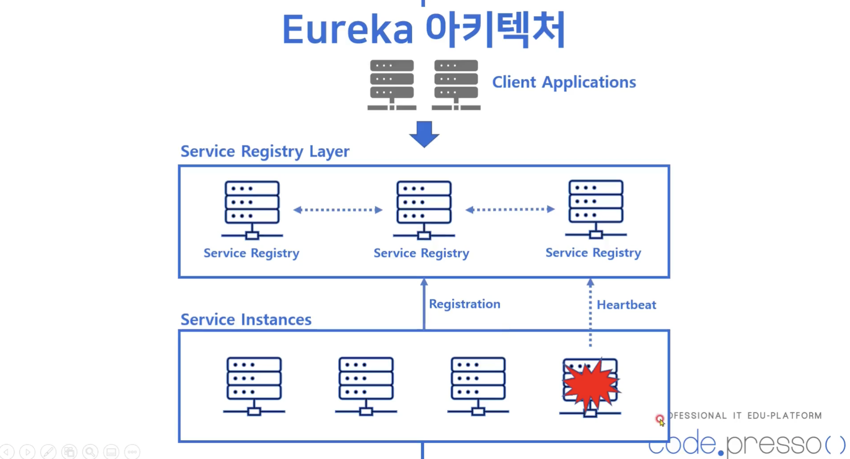 - 각 인스턴스들은 자신들의 상태를 알리기 위해 Heartbeat를 Service Registry에 전달함