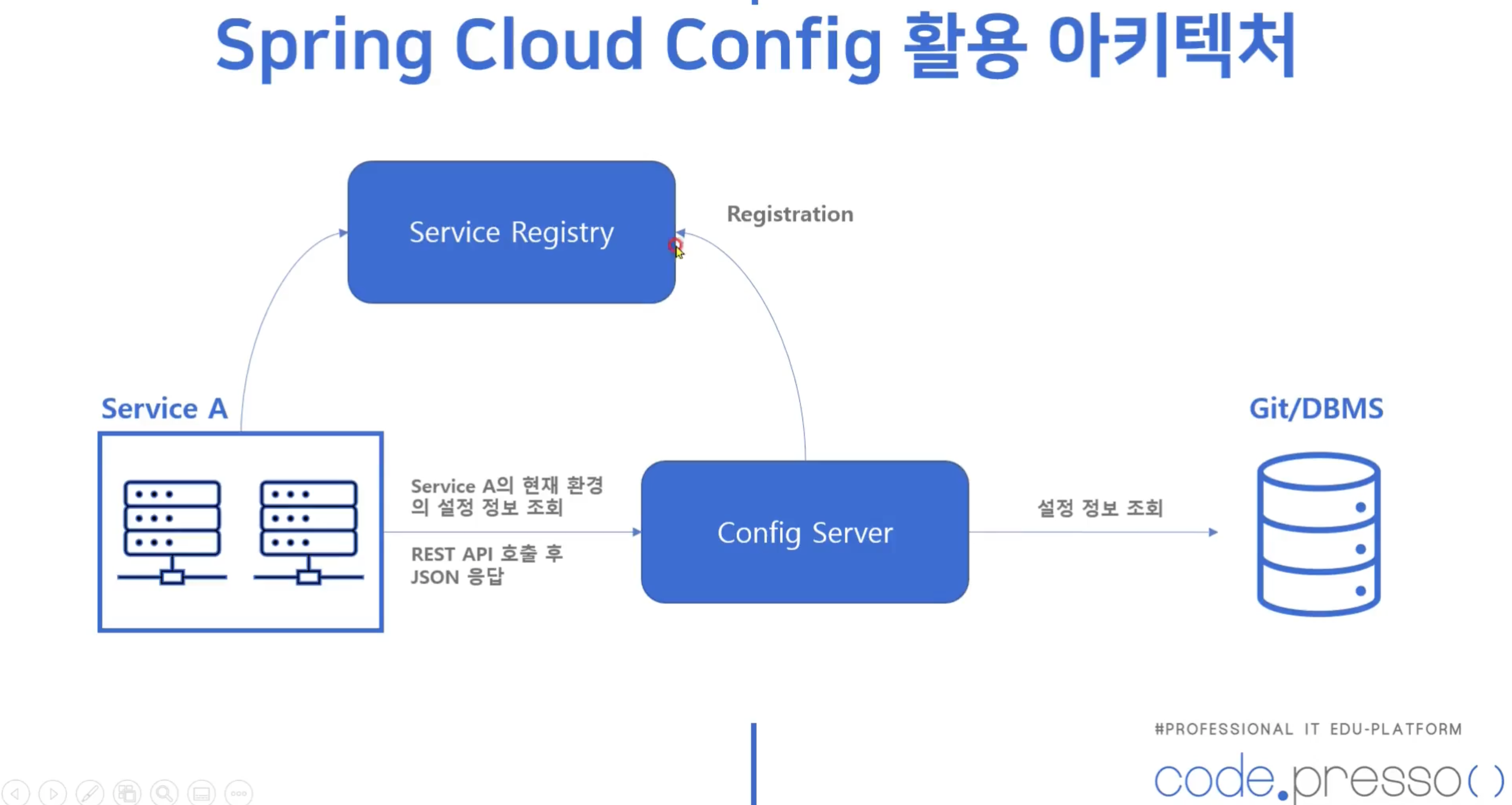 - 각 application이 가동되는 시점에 Config serer로 부터 외부 설정 정보를 Fetch 함