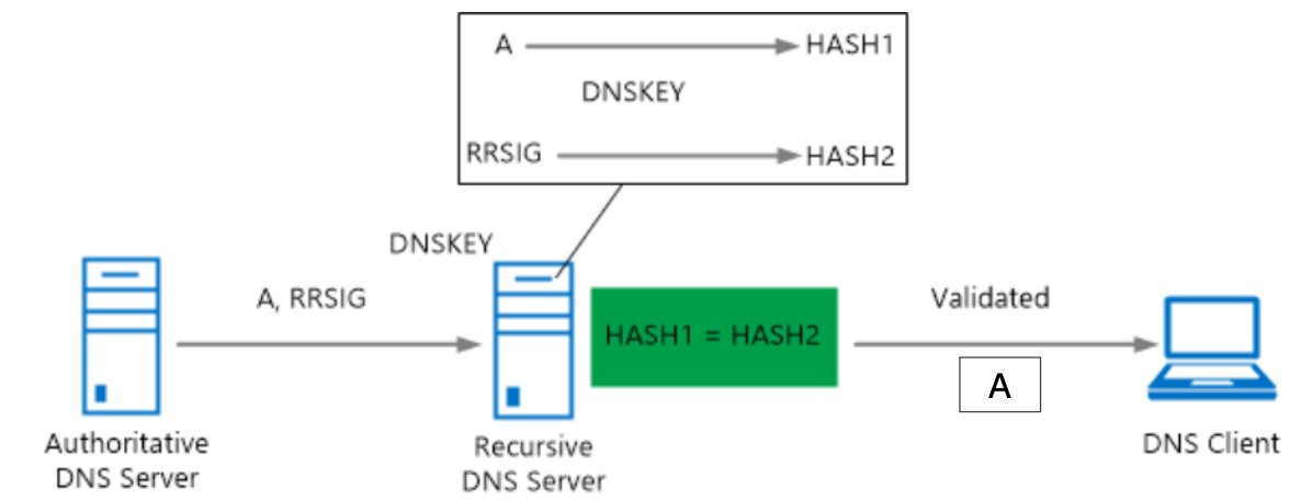 - DNSKEY RR을 사용하여 디지털 서명을 해독하여 권한 있는 DNS 서버의 응답을 검증한다.