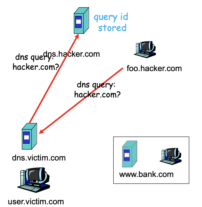 > 공격의 첫 번째 단계는 victim.com의 현재 쿼리 ID 번호를 알아내는 것 > 가장 간단한 방법은 서버에 공격자의 DNS 시스템을 쿼리하도록 하는 것 > 쿼리 ID가 어떻게 변경되는지 알기 위해 이 쿼리를 여러 번 반복하면서 알아냄 |