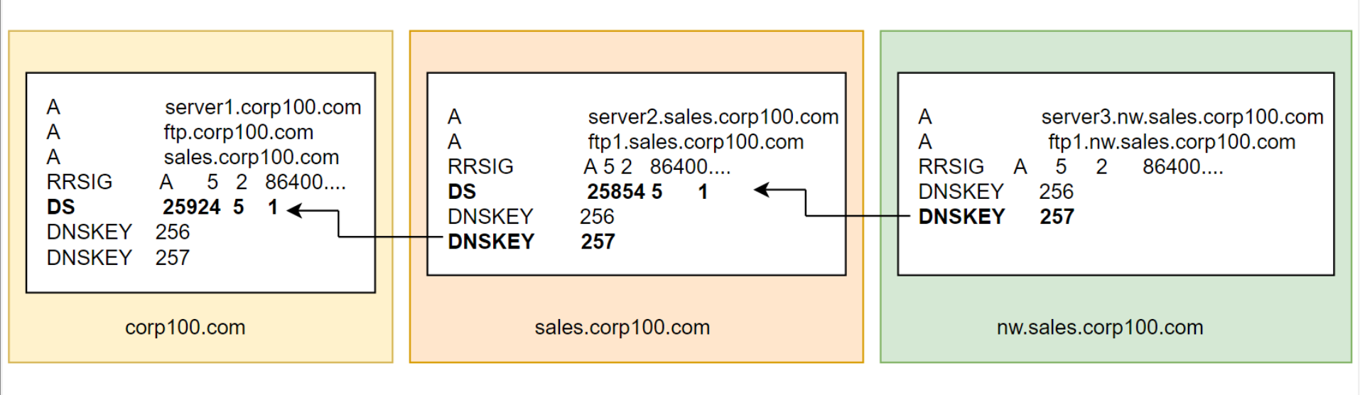 <3> DS resource record : – 하위 영역의 KSK 해시를 포함하며 신뢰되는 앵커로 사용할 수 있다. – 서명된 하위 영역에 대한 보안 위임 지점을 생성한다. |