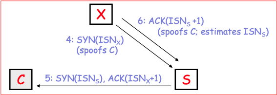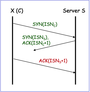 ▪ S->C: SYN(ISNS), ACK(ISC+1)