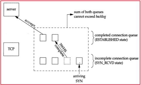 ▪ 불완전한 conn. queue : SYN_RCVD 상태의 각 연결에 대한 항목