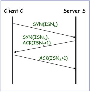 - S -> C : SYN(ISNs), ACK(ISNc+1)