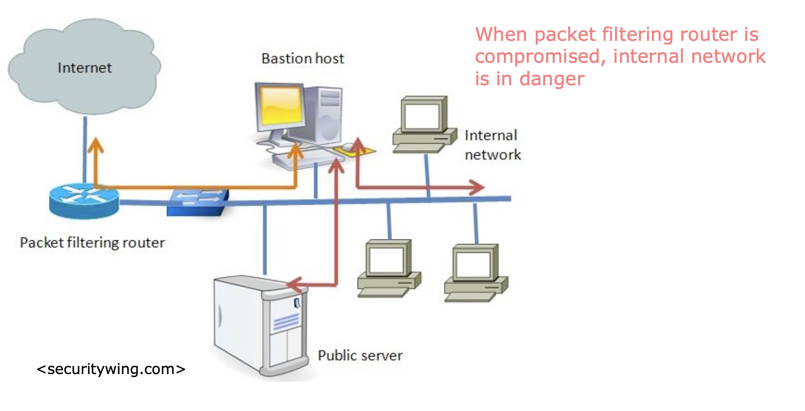 (3.1) Screened host architecture [ Bastion host with single homed host ]