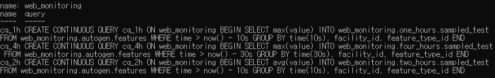 2. CQ ( show continuous queries )