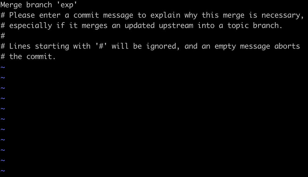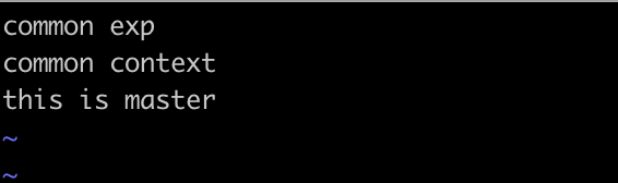 master에서는 common context 내용 뒤에 this is master를 기입하고 exp에서는 common context 내용 앞에 common exp라는 내용을 기입한 뒤 exp를 master에 병합해 보면 병합이 성공적으로 이루어지는 것을 확인 할 수 있습니다.