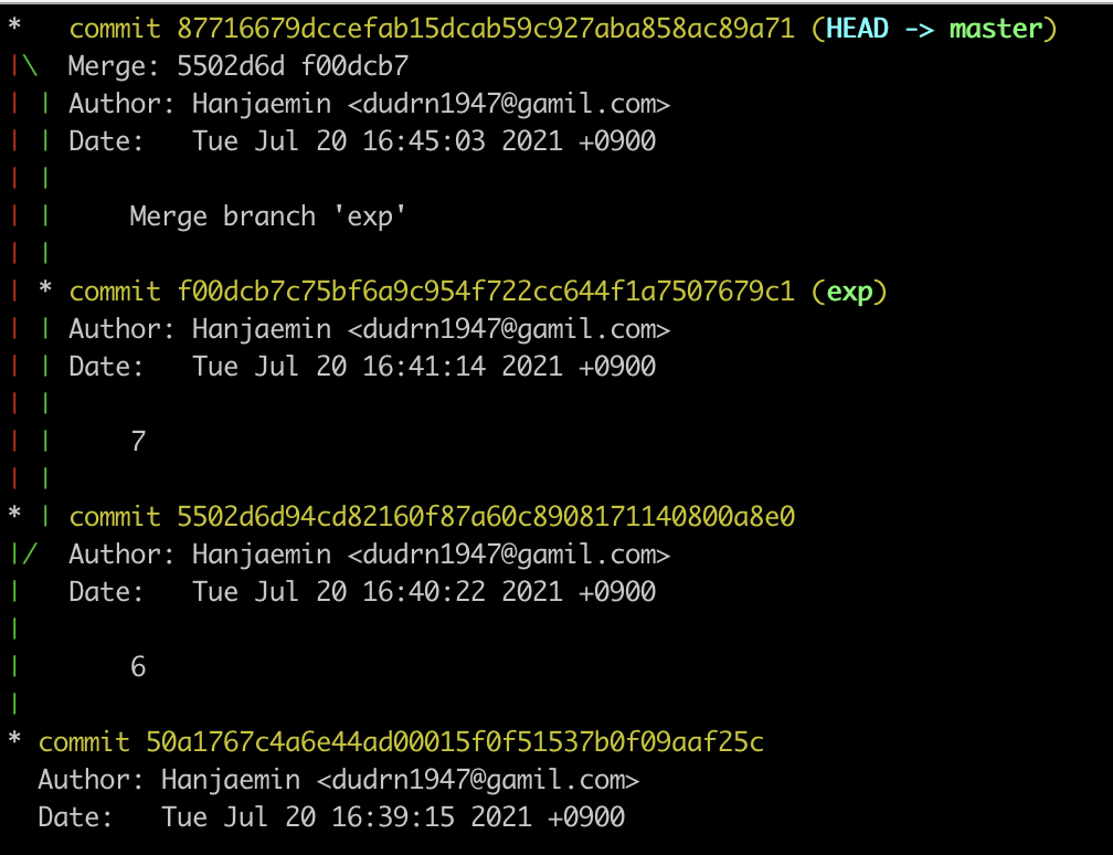 | Git (7) : branch & merge (0) | 2021.07.17 |