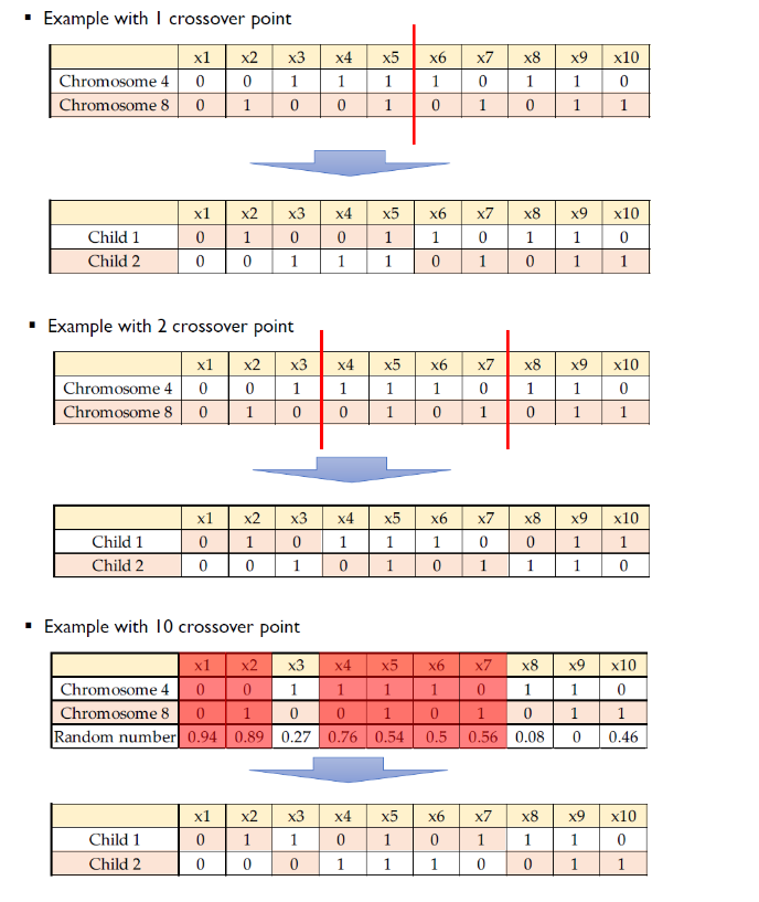 크로스 오버 단계의 교차는 유전자 알고리즘에서 가장 중요한 단계입니다. 교배할 각 부모 유전자 쌍에 대해 교차점은 유전자 내에서 무작위 로 선택됩니다. 자손은 교차점에 도달할 때까지 부모의 유전자를 서로 교환하여 생성됩니다.