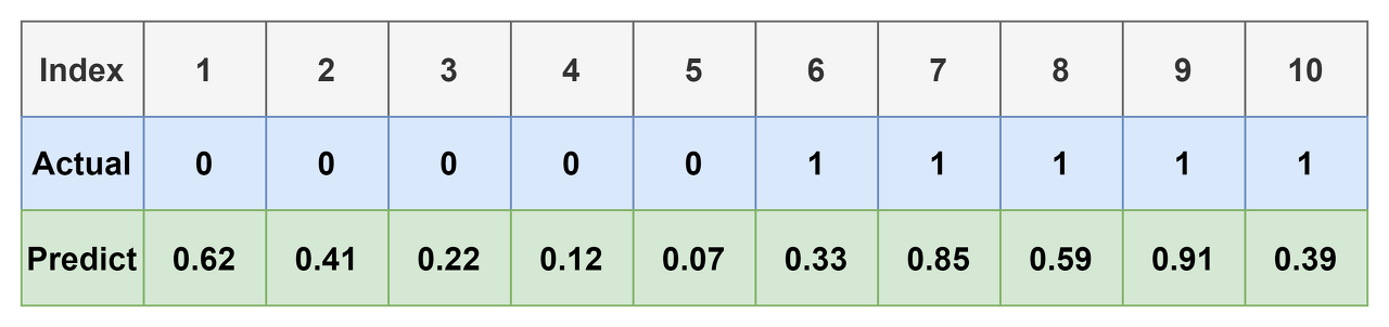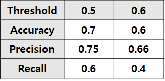 - 위 표에 0.5의 Threshold를 걸면 우리가 봤던 예시와 동일하다.