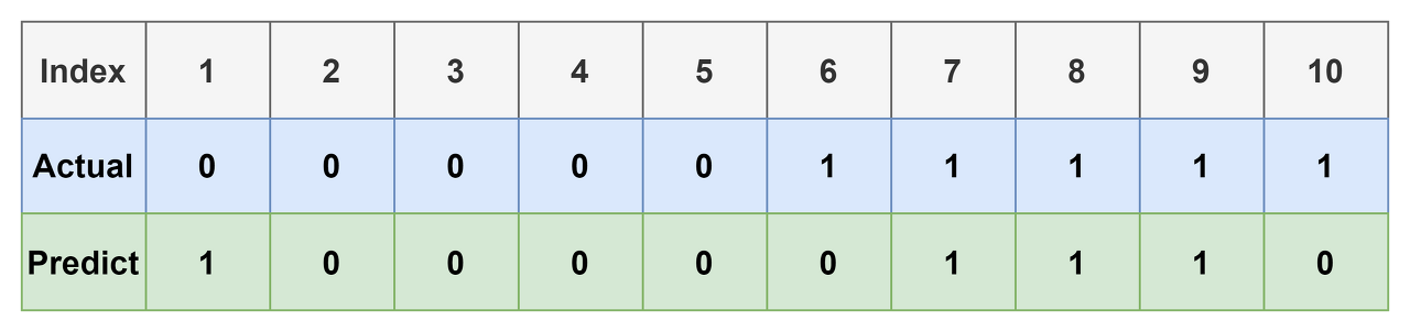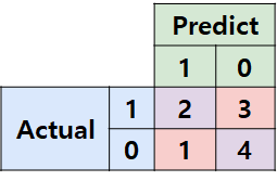 Training을 통한 Prediction의 성능을 측정하기 위해서 예측 value와 실제 value를 비교하기 위한 표이다.
