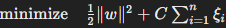 SVM 모델의 목적 함수는 2가지 항으로 구성된다.