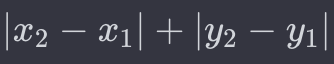 - 두 점 사이의 거리를 계산할 때 흔히 쓰는 방식으로, 두 점 사이의 거리를 의미한다.