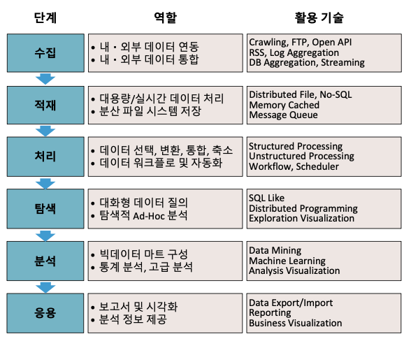 | 수집 ( Collectiong ) | Crawling, OpenAPI, Streaming, DB Aggregation |