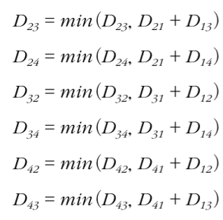 graph[a][b] = min(graph[a][b], graph[a][k] + graph[k][b])