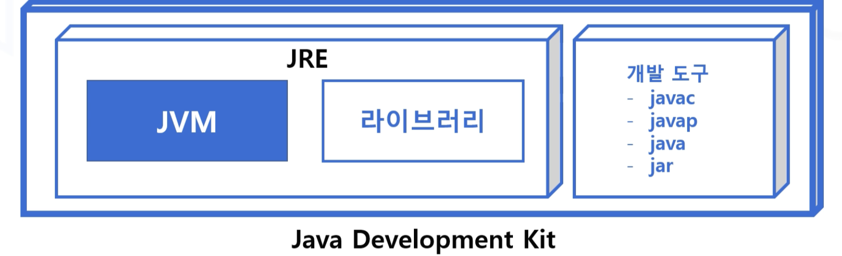 Java Developemnt Kit의 약자로 JRE + Java 개발 도구를 포함한다