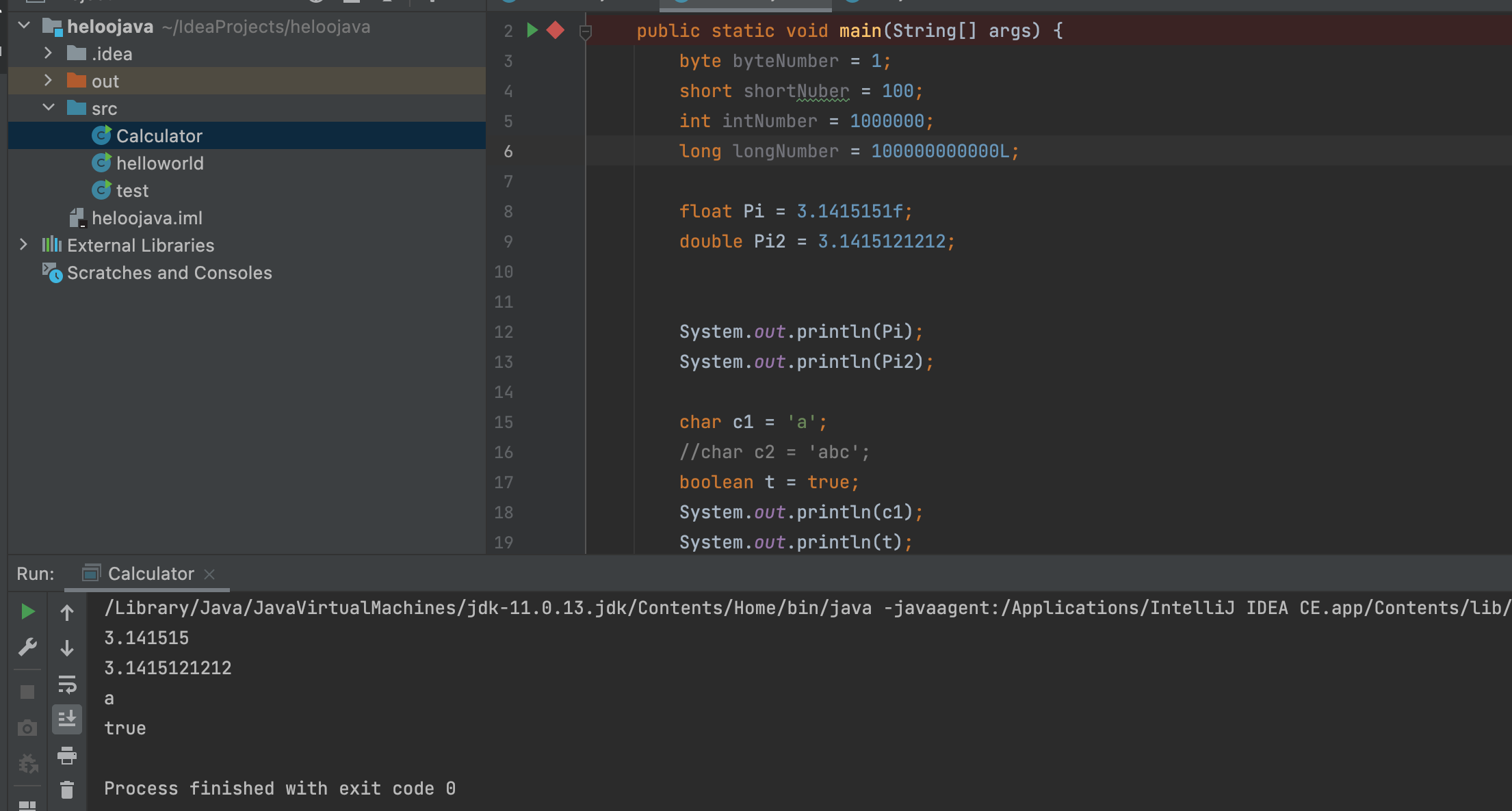 - long값에는 값 뒤에 접미사로 'L'을 붙이고 float값에는 접미사로 'f'를 사용한다.