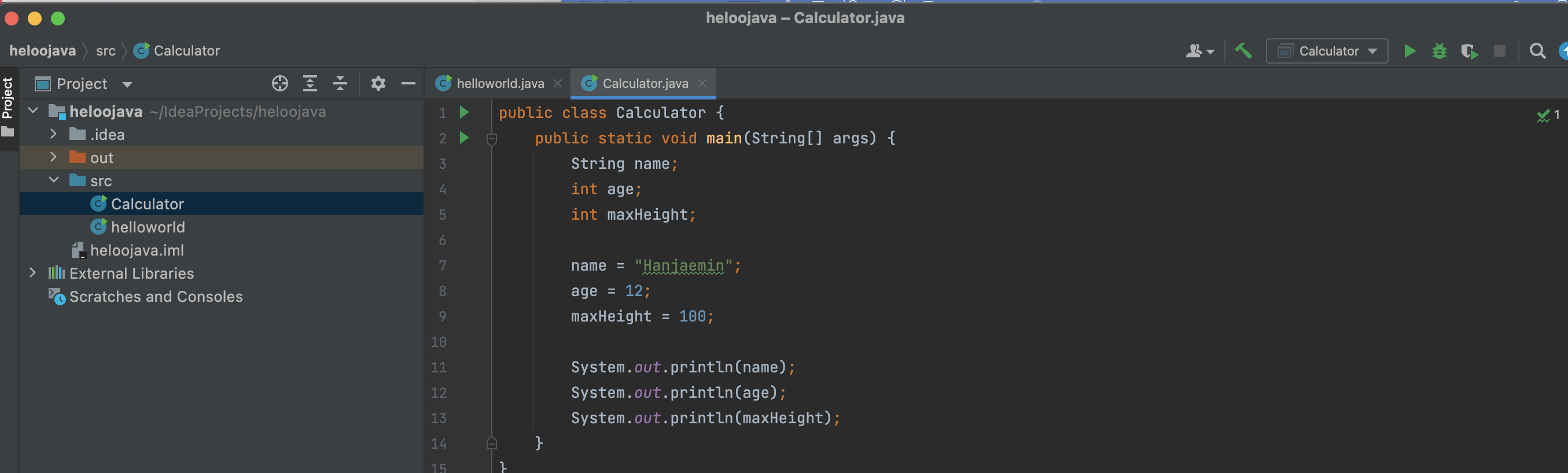 - (EX) System.out.println(age);