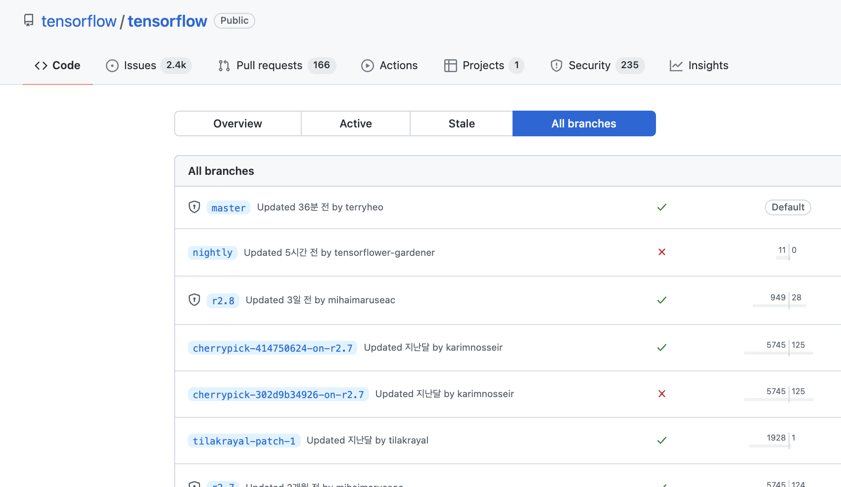 2) master 브랜치의 최신 커밋