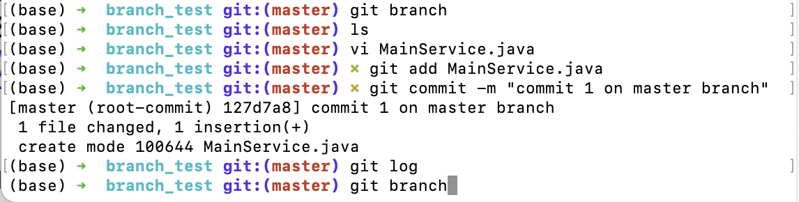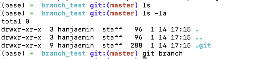 > 처음 git brnach 명령어를 입력하면 아무것도 뜨지 않는다.