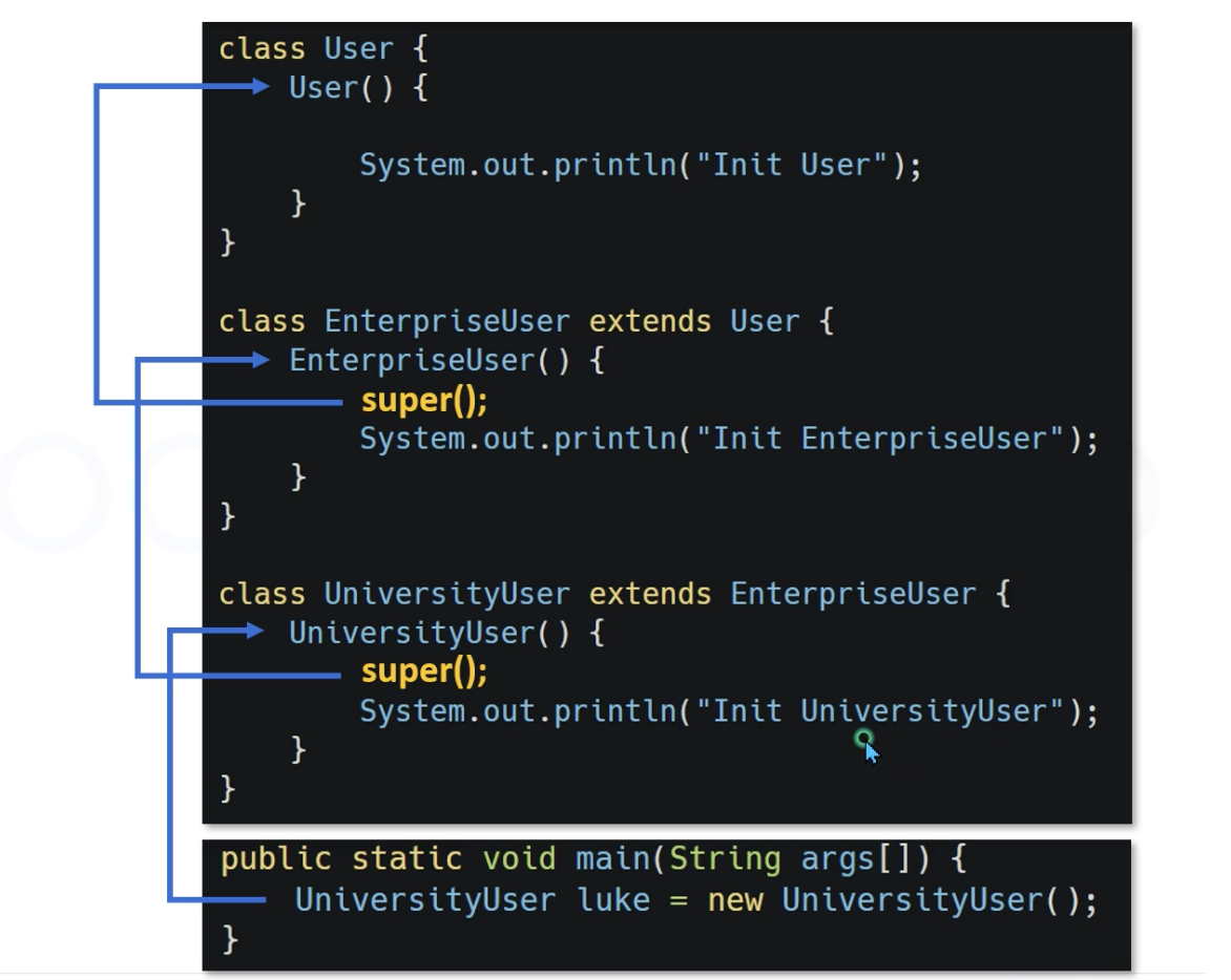 - 최상위 부모 클래스부터 하향식으로 호출한다.