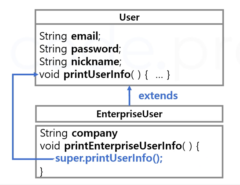 - Java에서 super는 부모 클래스를 의미하는 키워드이다. ( this는 자기 자신 지칭 )