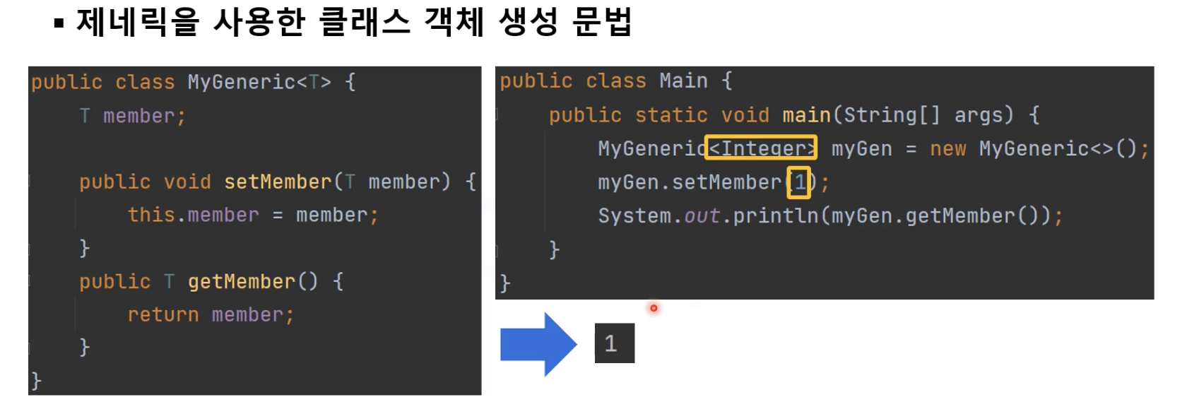 - 클래스 내 임의의 변수를 매번 다른 데이터 타입으로 지정해서 객체 생성 가능