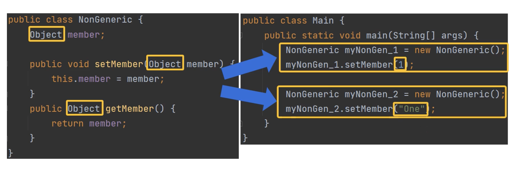 - Object Class를 인자로 이용한 Class 정의할 수 있지만, 단점 존재