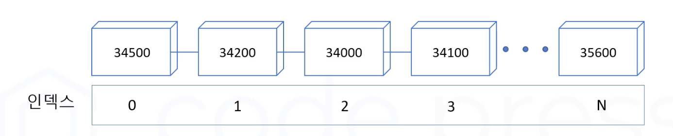 java.util.ArrayList<E> | - 매분마다 수집된 하루 치 주식 데이터 [ 100, 102 , 102, 103 , 101 .. ] |