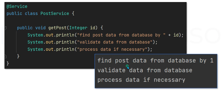 System.out.prinln("find post dat form databse by" + id);
