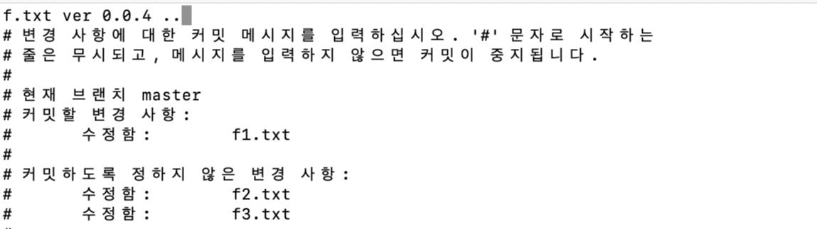 새로운 f.txt 0.0.3 ver이 추가된 것을 확인 할 수 있다. 그 이후 각 텍스트 파일에 공용변수 f_world를 추가해서 수정해보자!