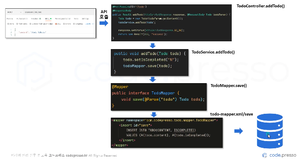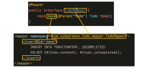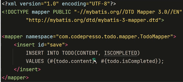 - com.codepresso.todo.mapper.TodoMapper 인터페이스 생성 후 코드 작성