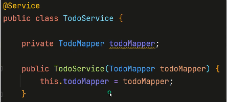 - TodoService에서 Todomapper로의 의존성 주입 설정