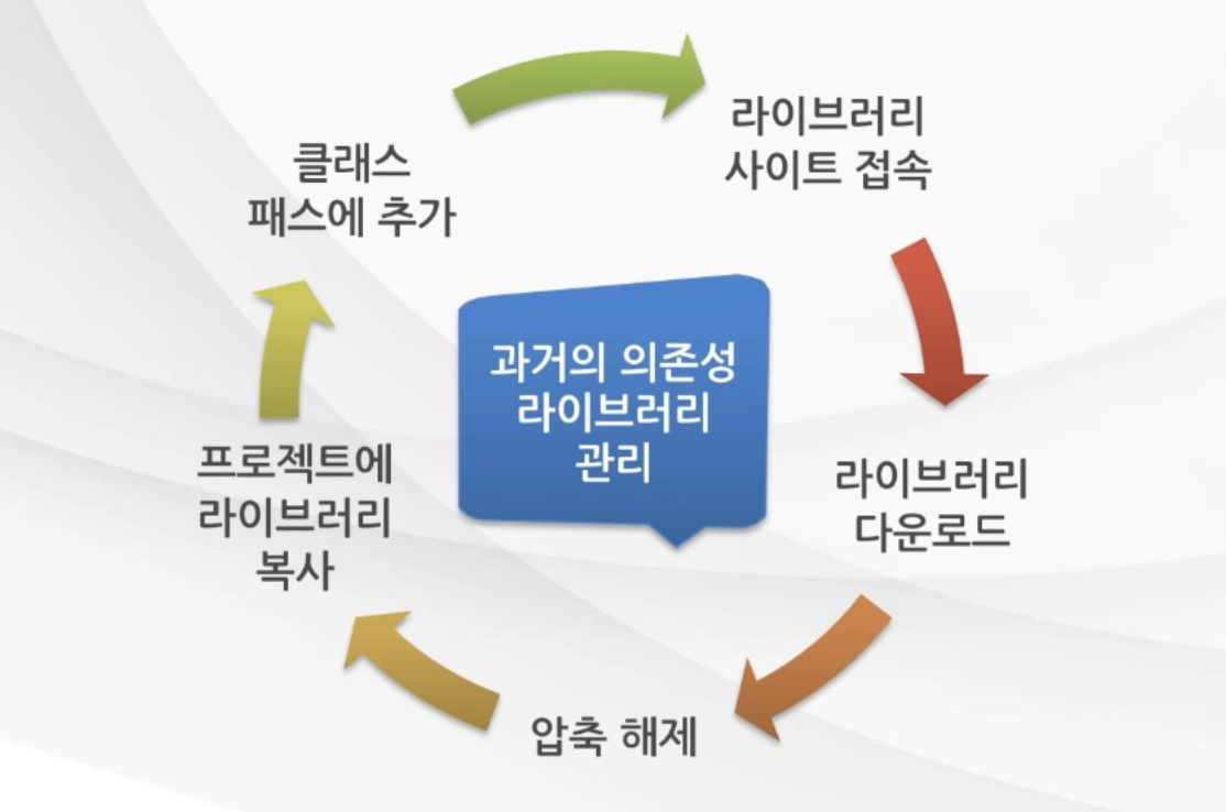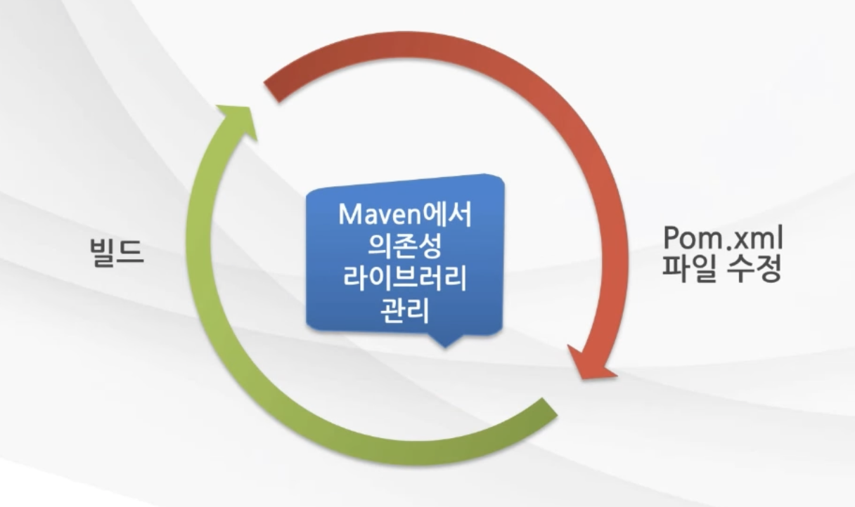 개발자가 필요한 라이브러리를 일일이 다운로드 받아 설정할 필요 없이 pom.xml 파일의 dependencies 영역에 사용할 라이브러리 정보를 설정하면 다운 후 사용 가능하게 된다.