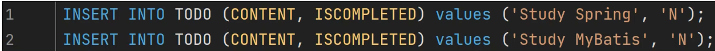 - Spring 프로젝트의 resources 디렉토리 하위에 data.sql 파일 생성 후 SQL 작성