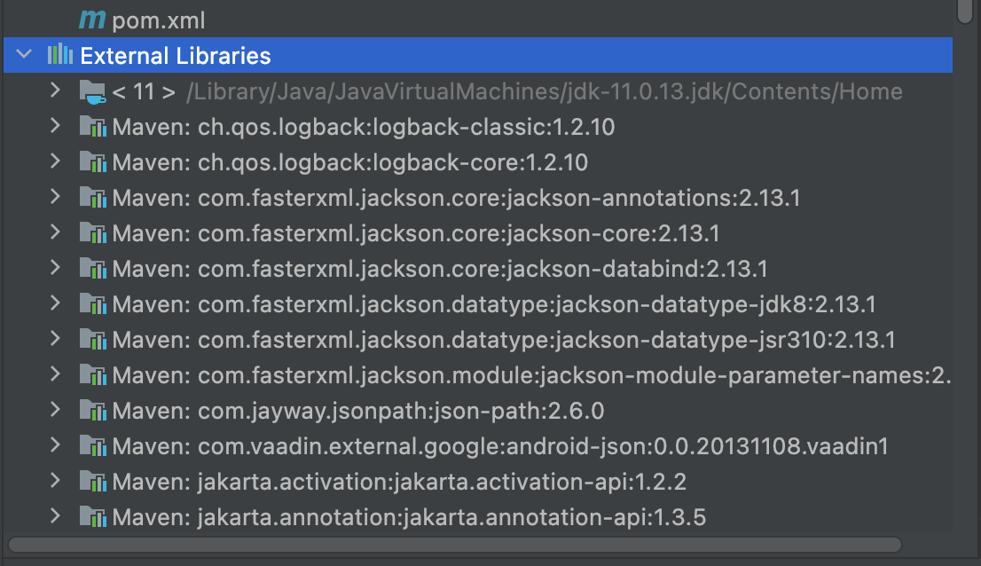 이러한 pom.xml을 통해서 외부 라이브러리들을 가져오게 된다.